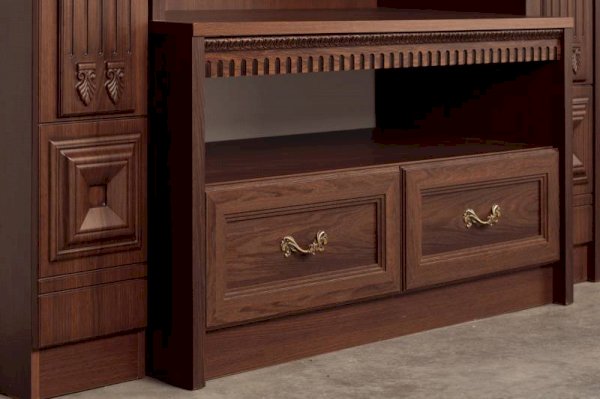 Фурнитура: ручки под состаренное золото (пр-ва Италии), петли и направляющие – шариковые частичного выдвижения без доводчиков («Hettich» пр-ва Германии)