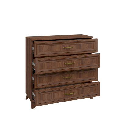 Широкий вместительный комод с четырьмя ящиками — полезный элемент хранения вещей в гостиной или спальне. Вместительная, и в то же время компактная — эта модель элегантное решение для разных типов интерьера.