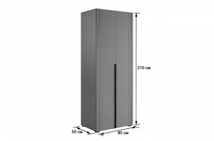 Шкаф оснащён длинными пластиковыми ручками и имеет удобное внутреннее наполнение: слева расположены полки, а справа — две штанги для вешалок. Это позволяет рационально использовать пространство и разместить различные типы одежды.
