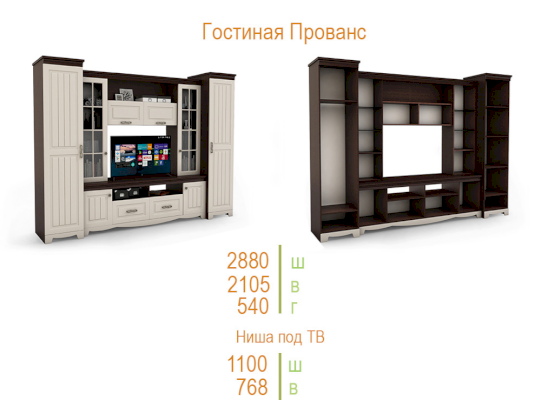 Гостиная Прованс (SM Мебель) – товар доступен к покупке в интернет-магазине dommebeli-v-chelyabinske.ru. Цена – 58 458 руб. без учета доставки. Стоимость дополнительных услуг и сроки получения мебели уточняйте у менеджера. Возможен безналичный расчет, оплата по карте на сайте.