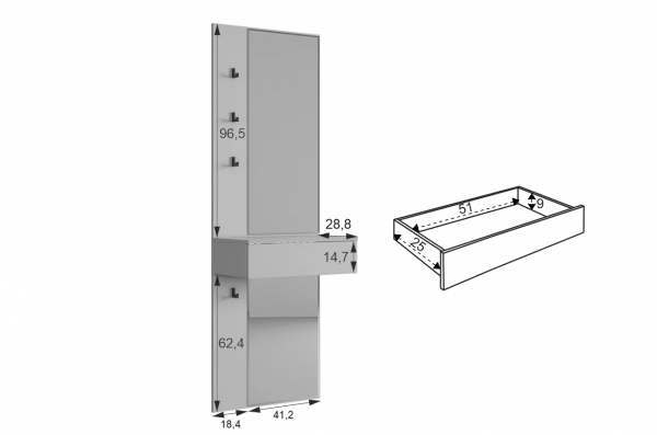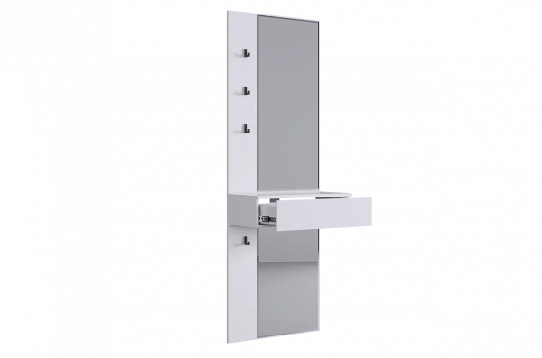 Крючки предоставляют удобное место для хранения сумок или аксессуаров. Выкатной ящик служит дополнительным пространством для хранения мелочей, таких как ключи, кошелек, косметика или другие небольшие предметы.