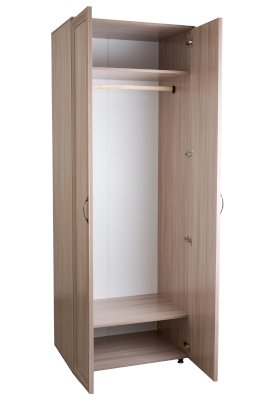 Простой вместительный шкаф, внутри полка-антресоль, штанга под одежду, полка под обувь. Может комплектоваться полками.